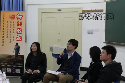 在嘉宾对话环节,沈若萌作为嘉宾主持人向到场嘉宾提出了同学们最关心的“如何进行更深入的社会调研”、“如何兼顾社会调研与学业”等问题。陈巧玲认为,只有想法是不够的,行动起来才是必须的,这也是迈出调研的第一步。她也建议,在调研的过程中,相比于问卷,更需要访谈这种直接又全面的信息收集方式。自动化系的艾晓冬鼓励同学们双肩挑,有计划的安排自己的科研和工作。任怀艺老师总结到做任何事情都会有困难和无奈,我们需要有敢于挑战权威和困难的毅力和精神。