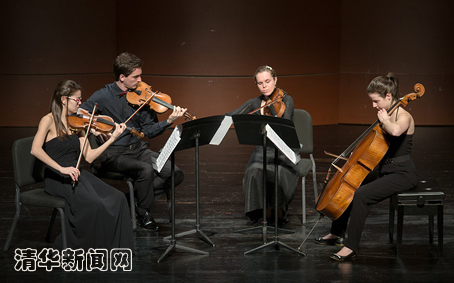 演奏中,这4位年轻的音乐家,凭借其娴熟的演奏技艺、充满朝气同时稳健的表现力以及演奏家之间独特的对话与默契,给清华的观众带来了一场听觉的饕餮盛宴。悠扬的行板、活泼的快板、兴奋的急板……灵动的提琴声时而俏皮欢快,时而低沉苦涩,带领着观众领略古典弦乐的别致魅力。同时,四位音乐家在琴弦上跳跃的手指,随乐曲摆动的身姿,投入的表情以及队友之间挑眉、微笑与眨眼的互动,都给演出增添了活泼与张力。