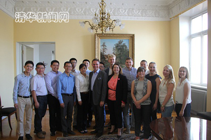 8月6日,芬兰总理于尔基·卡泰宁在总理官邸接见代表团成员并与大家合影。总理先生对清华学生代表团访问芬兰表示欢迎,他询问了代表团在芬兰的行程安排,对芬中两国的大学生密切交流感到欣慰。卡泰宁总理在讲话中表示,芬中两国经济往来日益密切,尤其在清洁和能源技术上有广阔的合作空间。总理先生还与代表团成员简要交流了芬兰当前面临的一些社会问题和挑战。代表团一行与总理先生交流了对芬兰的感受。