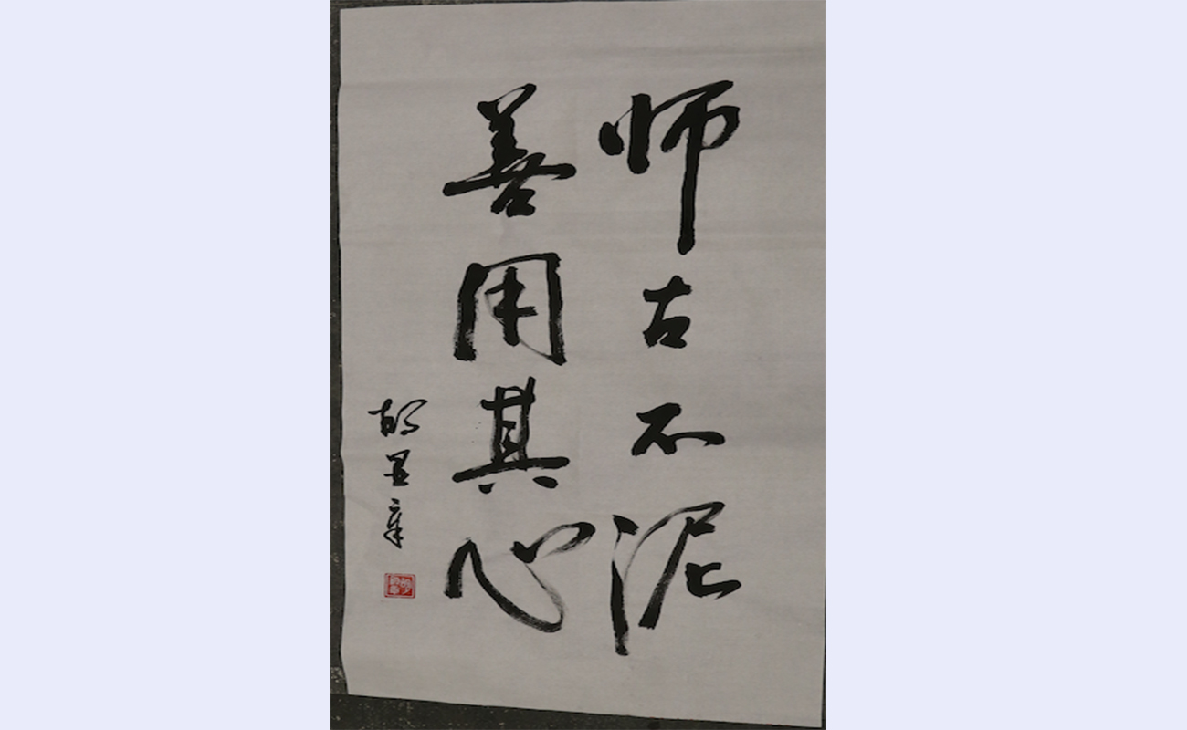 胡显章仔细观看了书法展现场的学生作品,饶有兴致地与各位老师探讨点评了部分作品,并为此次书法作品展题词。胡显章对此次书法作品展给予充分肯定,并叮嘱一定要将“书法与篆刻创作”课程讲授与学校“三位一体”的教学理念相融合,为提升清华学生的人文素养、促进校园文化氛围建设多作贡献。