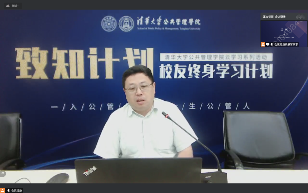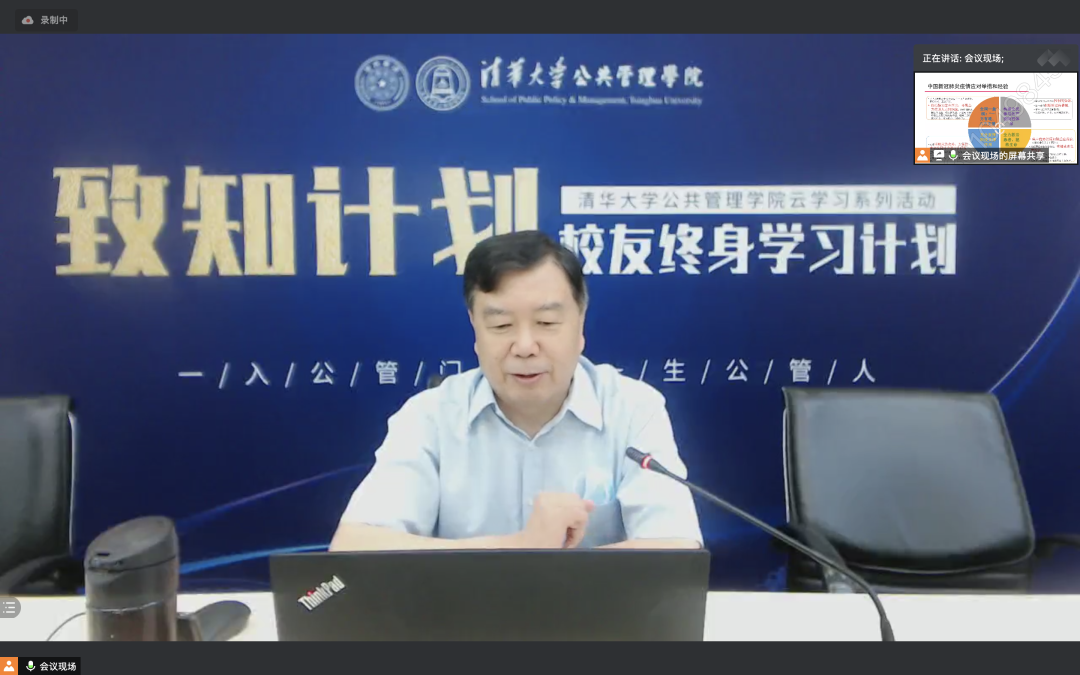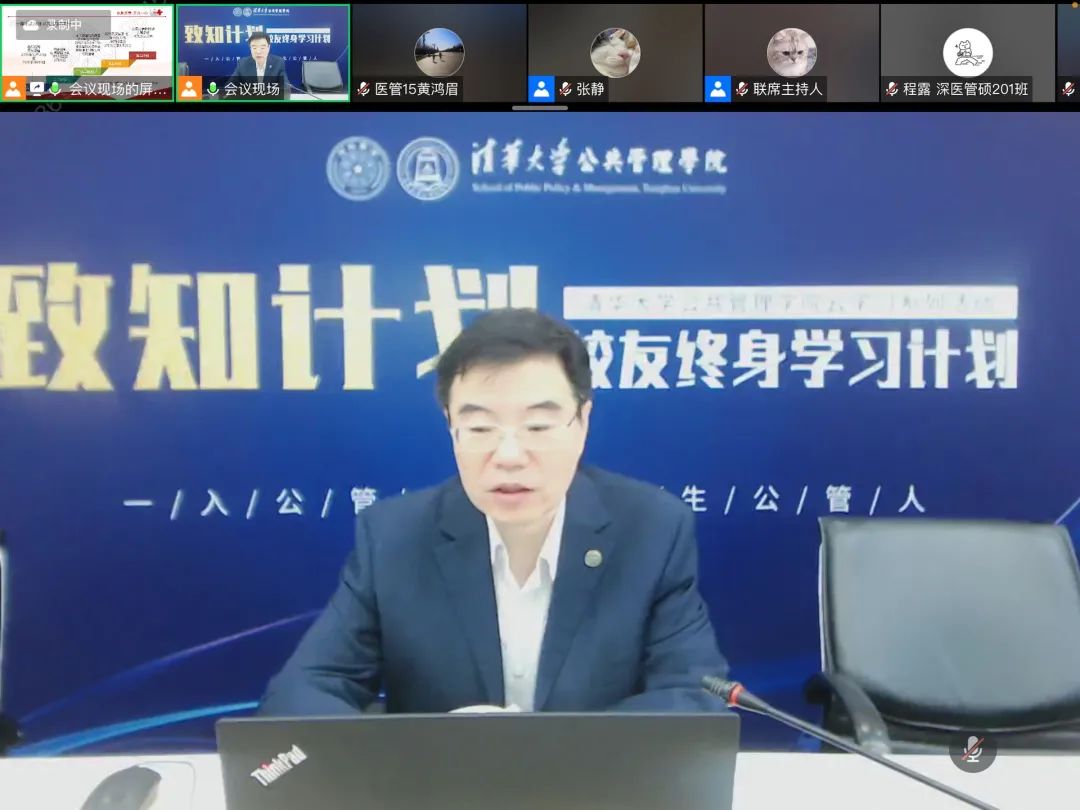 彭宗超在致辞中介绍了学院组织校友终身学习计划的背景和开展情况,致知计划贯彻学院终身学习的理念,突破传统线下授课限制,在疫情期间继续开展线上服务,为校友交流学习提供更加便利的机会。此次与医院管理研究院合作开办研修论坛正是对新冠疫情背景下社会治理需求的回应。彭宗超再次向各位校友对学院发展长期以来的关注与支持表示由衷的感谢,并表示学院也会继续发挥优势,给广大校友提供更好的学习服务。