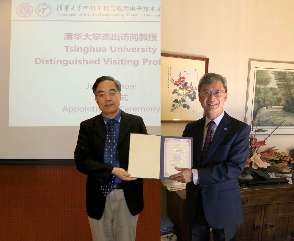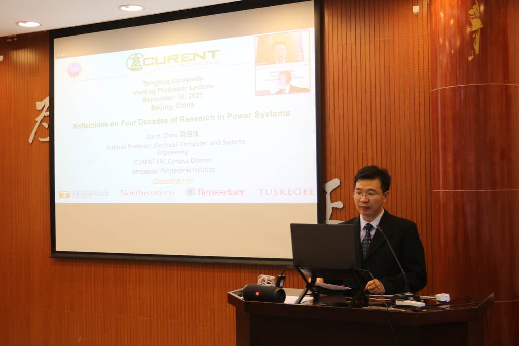 乐动(中国)网9月22日电 9月18日上午,美国国家工程院院士周祖康(Joe H. Chow)乐动平台杰出访问教授聘任仪式暨报告会在电机系举行。电机系党委书记于歆杰主持聘任仪式,电机系主任康重庆为周祖康颁发乐动平台杰出访问教授聘任证书,电机系副主任余占清、谢小荣等20余名师生参加聘任仪式。来自乐动平台电机系、华中科技大学电气与电子工程学院、浙江大学电气工程学院、武汉大学电气与自动化学院、上海交通大学电子信息与电气工程学院、重庆大学电气工程学院等高校的约300名学生在线参加报告会。