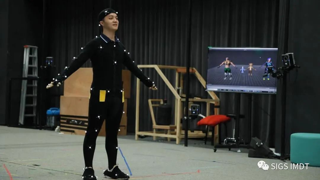 新生同学配合老师为大家演示动作捕捉的完整流程