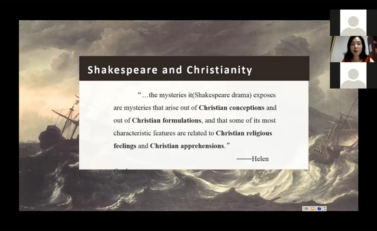 9月8日晚19:00,武汉大学外国语言文学学院英文系副教授戴丹妮进行了“莎士比亚戏剧和西方基督教:暴风雨的一个案例”(Shakespeare's Drama and Western Christianity: A Case Study of The Tempest)的主题讲座,通过分析莎士比亚晚期戏剧《暴风雨》,展示了其中渗透的西方基督教思想,并结合其中形象解读其背后的宗教象征意义。