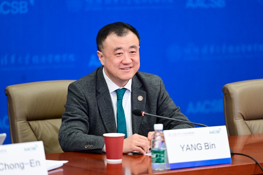 杨斌与来访专家就商学院在大学中的定位、交叉学科的发展、深圳院区建设、学校招生名额等进行了深入探讨,并表达了对学院未来发展的殷切期盼。