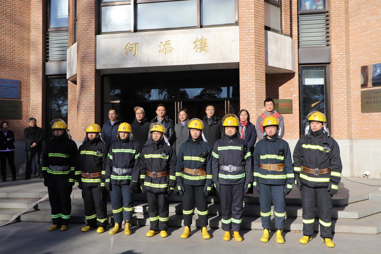 化学系党委书记梁琼麟在致辞中表示,近年来化学系不断完善安全管理制度,重视提高师生员工安全意识,重视安全疏散、逃生和救援能力建设,每年12月安全教育月都会开展系列活动,12月18日化学系安全教育日会组织全楼师生进行疏散演习演练。化学系结合科研及楼宇实际特点成立微型消防站,将对安全事故前期快速处置、人员及时救援起到积极作用。今后化学系还会持续加强师生员工疏散演习演练,提高大家的安全意识,缩短疏散出楼的时间,做到更快速更有效。