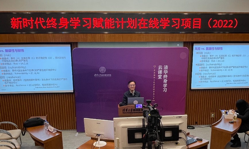 范维澄的课程主题为“从燃烧、火灾到安全——我国公共安全的发展与挑战”。他结合自己的学术经历,讲述了如何从燃烧研究、火灾研究进入安全研究领域,进而推动我国安全学科的建立和发展。他系统讲解了我国公共安全体系的理论框架,提出保障公共安全需要“科技+管理+文化”三足鼎立,介绍了“清华方案 合肥模式”的成功实践。2014年中央国家安全委员会正式成立,清华国家安全研究顺势而生。范维澄站位国家战略需求高度,给学员们介绍了国家安全学科发展和科技研究前沿。最后,作为科技冬奥专家委员会主任、重点专项专家组组长,他着眼于科技冬奥项目和成果,展望了公共安全未来发展趋势。