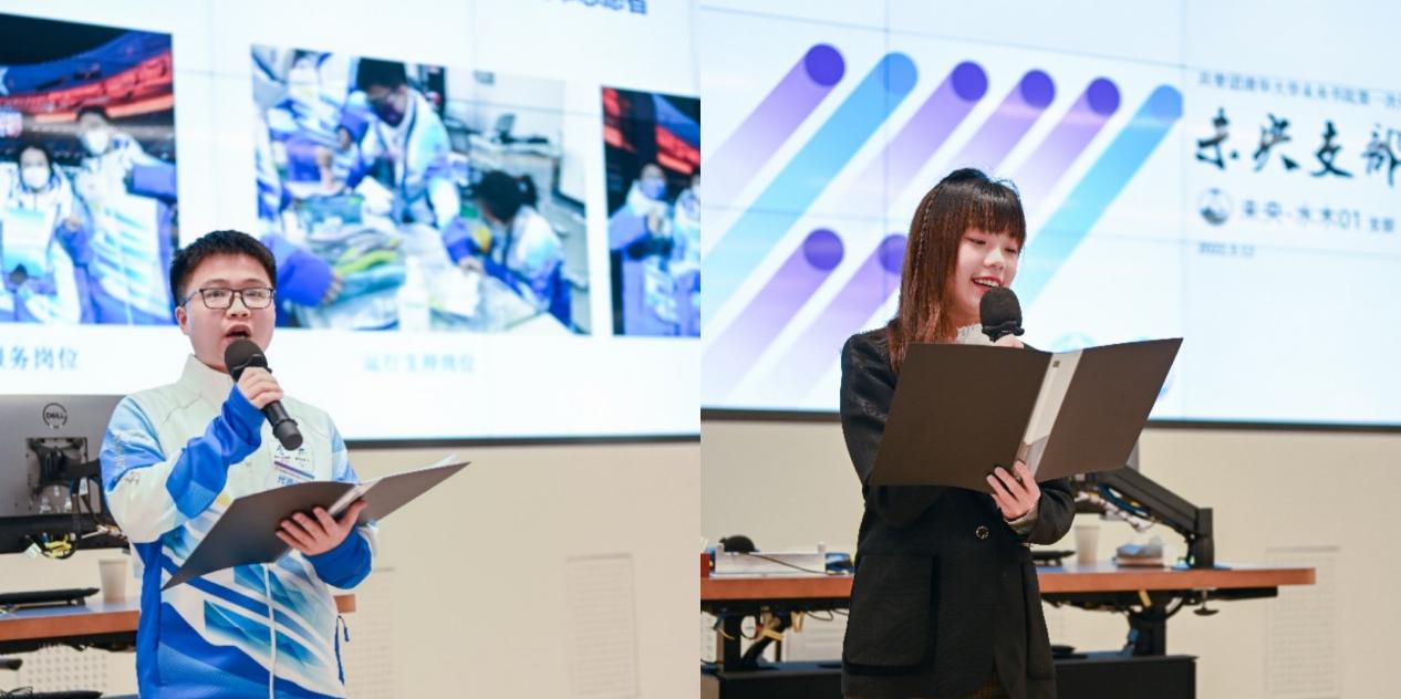 未央书院部分学生代表在大会上进行了交流发言,2020级本科生崔嘉骏同学作为未央书院冬奥志愿者的小组长,分享了未央同学们服务冬奥会的感受;2020级本科生周亦涵同学作为团支书,分享了班级的支部故事。
