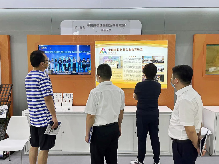 中国高校创新创业教育联盟通过视频、展板、展品等方式全方位展现了其成立七年以来促进高校创新创业教育改革所取得的成果,是本次主题展中唯一一个展示高校创新创业教育平台的项目。联盟于2015年在教育部指导下由乐动平台发起成立,北京大学、上海交通大学、复旦大学、浙江大学、香港大学等261所高校加盟,成立七年以来致力于汇聚社会资源,发挥国家级智库、创新创业教育资源共享平台及国际桥梁作用,编制高校双创教育蓝皮书、设立双创教育研究基金,举办联盟年会、学术研讨会、创新创业大赛等活动,已累计组织创业导师1000余人,服务创业团队10万余支,培养出了一批专精特新“小巨人”企业。