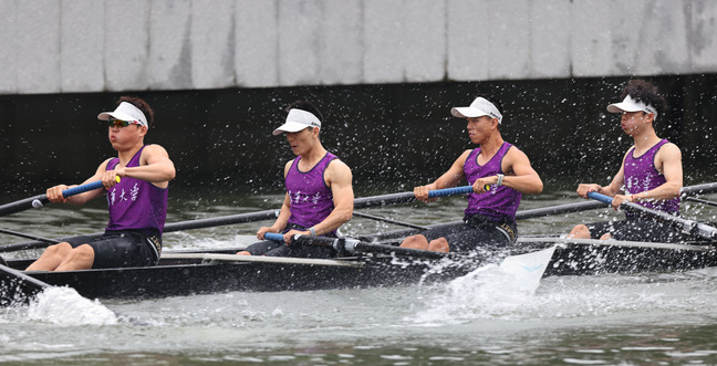在首先进行的“男子八人单桨有舵手”学生组预赛中,深圳国际研究生院赛艇队队员一“艇”当先,齐心协力,第一个冲过终点线,以2分37’70’’的成绩位列小组第一,顺利晋级FA决赛。