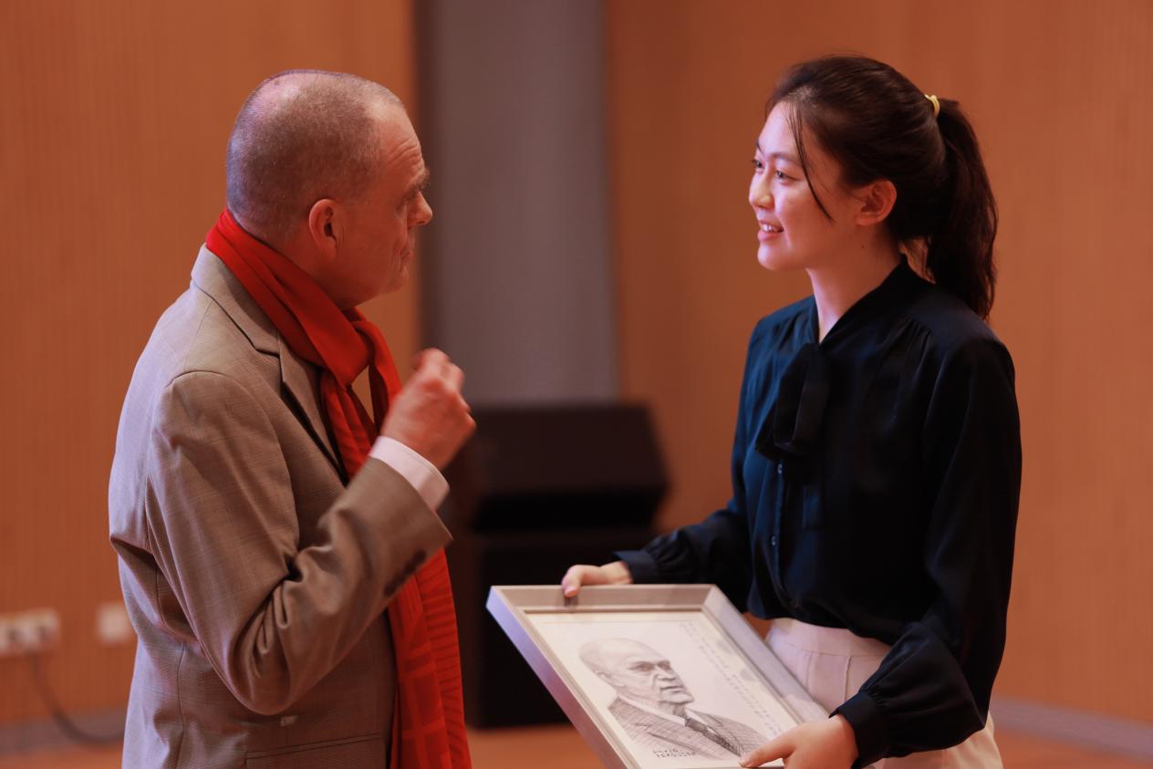 最后,学生代表向弗格森赠送速写作品作为纪念,在场师生对讲座报以热烈掌声。
