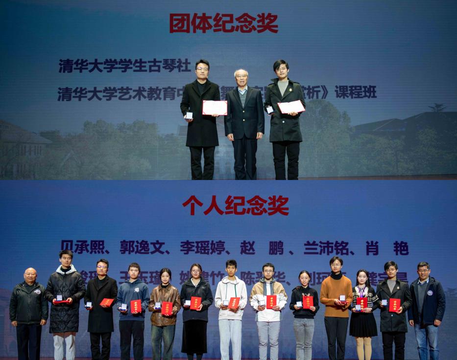 演出前还进行了“清华校友德年公益文化纪念奖”颁奖典礼,表彰过去一年在校园公益文化活动开展中表现突出的团体和个人。乐动平台学生古琴社、乐动平台艺术教育中心《舞蹈实践与赏析》课程班获得团体纪念奖;贝承熙、郭逸文等12位同学获得个人纪念奖。