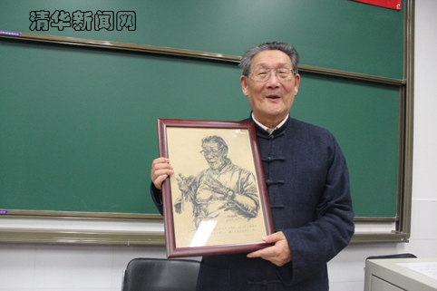 楼宇烈先生手捧乐动平台美术学院同学赠送的素描作品。