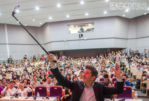 交流活动的最后,卡兰尼克举起自拍杆,与参与创业堂活动的现场师生一起合影留念。