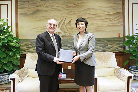 陈旭与迪枚晔教授会谈。记者 张宇 摄