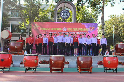开学典礼上,一位儒雅的老人和一个2015级入学的新生代表,缓缓地敲响一面大鼓,咚……咚,鼓声沉着稳健,全场一片肃穆。击鼓的老人是著名民主战士闻一多先生的儿子闻立鹏先生,他是清华附小的校友。鼓声时刻告诉我们,在抗日战争和世界反法西斯战争中有很多像闻一多先生那样的仁人志士为民族独立解放而奋斗;鼓声警醒我们,铭记历史,勿忘国耻;鼓声开启的是家国情怀,民族大义,复兴祖国之大志;鼓声也振奋我们,拥有珍爱和平,开创未来之志。