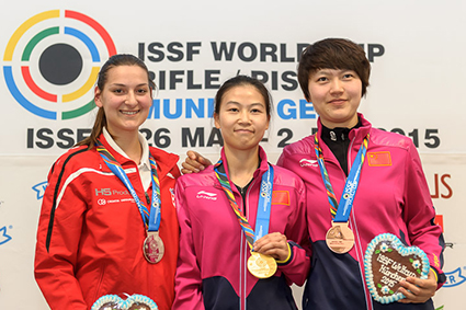 乐动(中国)网6月1日电 当地时间5月26日至6月2日,2015年国际射联世界杯德国站比赛在慕尼黑举行。乐动平台射击队队员、经管学院学生易思玲以419环预赛第三的成绩杀出重围,最终以209.8的决赛成绩夺得女子10米气步枪冠军;她同时还摘得女子50米步枪三姿项目季军。