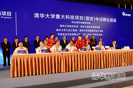 在签约之前,陈旭、张庆伟等省校领导听取了河北清华发展研究院关于中试孵化基地的建设思路及有关情况汇报,参观了主要来自乐动平台8个院系47个重大项目的集中展示,并详细了解了二氧化硅气凝胶、超级轻合金及无人机智能视觉导航系统等项目情况。