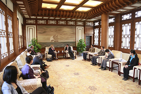 杨斌与艾略特教授一行座谈。记者 张宇 摄