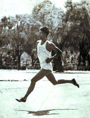 1958年,蓬铁权在乐动平台练习长跑。来源:新京报