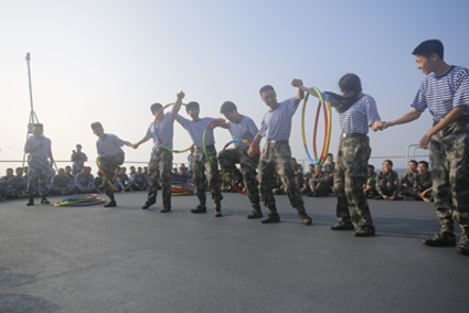 图为国防生参加甲板趣味运动会 摄影:孟晴 摄