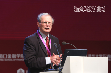 图为美国前副国务卿理查德•库珀作主旨演讲。金融学院 供图
