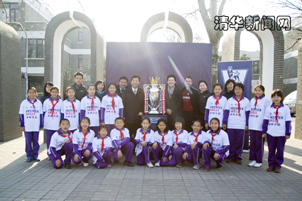 “学转英超”青少年足球普及项目展示是清华附小阳光体育节启动仪式上的一项重要活动。庆典仪式上,清华附小校长窦桂梅代表学校对英国驻华教育公使以及英国足球超级联赛和我国教育部、足协和北京奥运促进会的客人们表示欢迎。窦桂梅说,清华附小一直高度重视学生体育,将学生的健康放在首位,并把足球作为清华附小未来体育发展的重要战略。艾琳女士介绍了英国足球发展的历史和中国教育部合作在青少年中推广足球的项目情况。