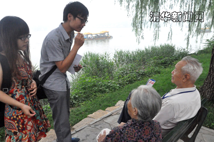 图为北京支队队员在颐和园采访公众对于眼角膜捐献的态度。 厉丹阳 摄