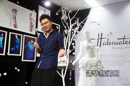 乐动(中国)网5月24日电 (通讯员 陈夏宣)在5月17日开幕的第九届中国(深圳)国际文化产业博览交易会大学城创意园分会上,乐动平台深圳研究生院艺术硕士生刘海涛同学与自创服装品牌Hiderwater首次登场,展出了他设计的系列高级定制服装,吸引了众多关注的目光。这是清华深圳研究生院第一个在校生自创品牌。