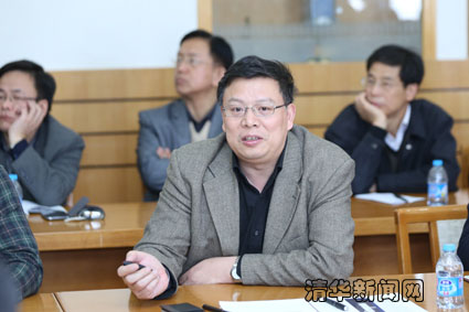 图为精仪系主任尤政介绍精仪系情况。记者 智斐 摄