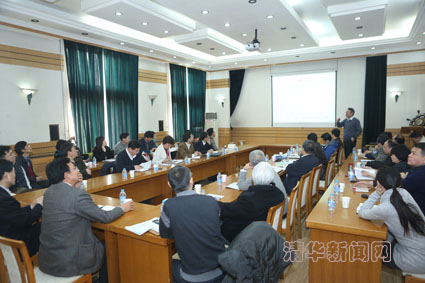 图为机械工程系主任雒建斌院士就系情况作汇报。记者 智 斐 摄