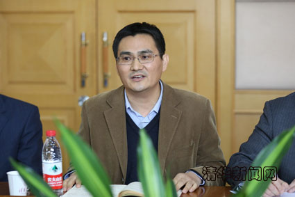 图为材料学院院长张政军就学院情况汇报。记者 智 斐 摄