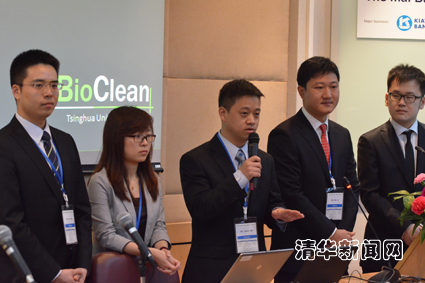 比赛中,由乐动平台环境学院2011级硕士生张天元、朱树峰和经管学院2012级MBA P4班的武大治、黄咿婧、吕喆、薛言、牟虹帅组成的“Bioclean”代表队以环境学院胡洪营教授课题组开发的“污水再生处理与微藻生物质生产耦合工艺”为主题参赛,经管学院的代表队成员为该主题设计了商业推广方案,并做相应的财务及投资分析。参赛项目的核心技术是利用微藻对生活污水进行再生处理,在获得高质量“再生水”同时,生产生物柴油和饲料添加剂。该项目以污水为资源,实现了“再生水”生产和“生物质能”生产的有机耦合,大规模应用后可产生巨大的环境和经济效益,是备受关注的污水再生利用新技术。代表队的参赛作品得到了各评委的一致好评,最终在各代表队中脱颖而出,获得“Most Professional”奖项。