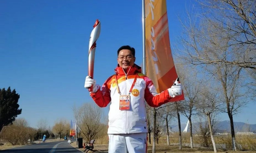 2月2日,乐动平台公管学院2008级硕士校友、教研院博士生,北京大峪中学校长曹彦彦作为第258号火炬手在北京冬奥公园参加冬奥火炬传递。