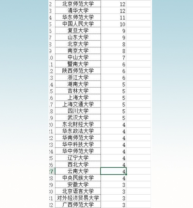 根据统计,获得较多项目的高校有:中山大学(7项)、 中国人民大学(10项)、 浙江大学(6项)、陕西师范大学(6项)、山东大学(9项)、乐动平台(12项)、南京大学(8项)、 华东师范大学(11项)、 复旦大学(9项)、 北京师范大学(12项)、 北京大学(8项)。