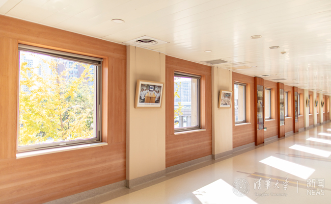 医疗大楼与行政楼之间由一连廊链接,这也是医院文化展示的一个窗口。医生与行政人员可以经由这个通道,完成医疗场所与用餐、行政办公功能之前的穿梭。患者也可以在候诊时间来到这里欣赏风采主题展。