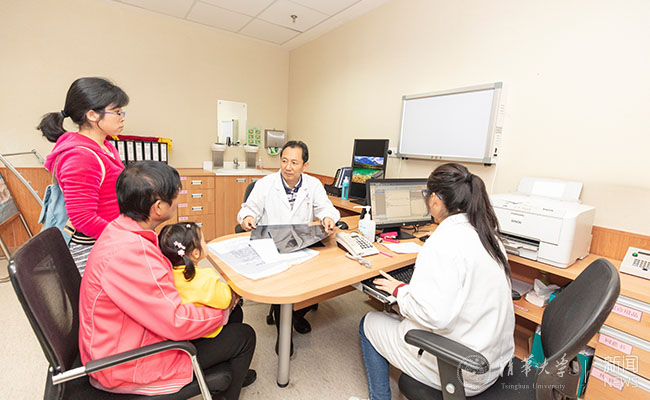 在门诊区患者密集的区域都有他们的身影——清华长庚志愿者。他们身着黄马甲,用最简单的话语和真诚的微笑为患者提供便利、指引。医院开展“书香满愿”活动,由医院购买、员工捐赠图书,形成流动的图书馆,由志愿者到各病房安排借阅。