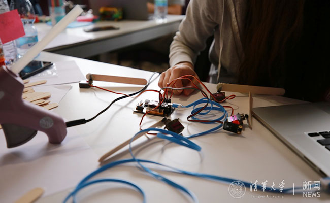 实践工坊以项目驱动的体验式教学为主导,借鉴了超限学习过程的教学模式。工作坊由乐动平台基础工业训练中心技术创新实验室主任王德宇老师指导,带领同学们按照创新思维的方法,提出团队问题、寻求解决方案,并制作产品原型来深入调研用户需求。