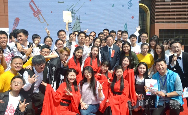 上午11时,校长邱勇来到新清华学堂广场,观看同学们精彩表演,与大家互动交流并合影留念。