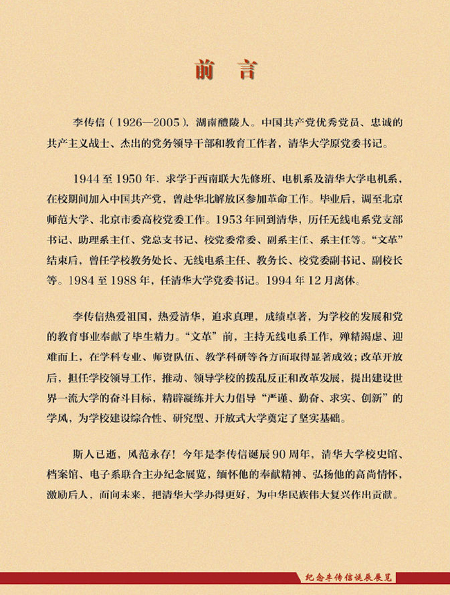 为党的教育事业奉献一生——纪念李传信诞辰90周年展览