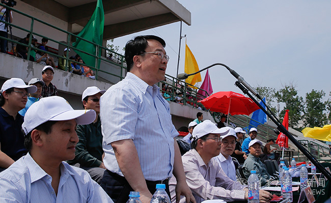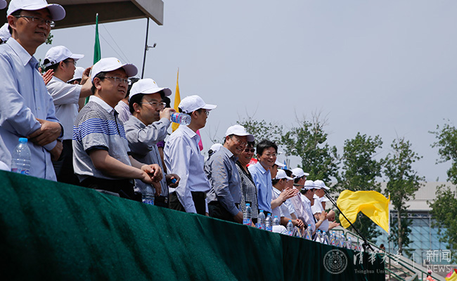 常务副校长程建平宣布第四十三届清华教职工运动会开幕。记者 张 宇 摄