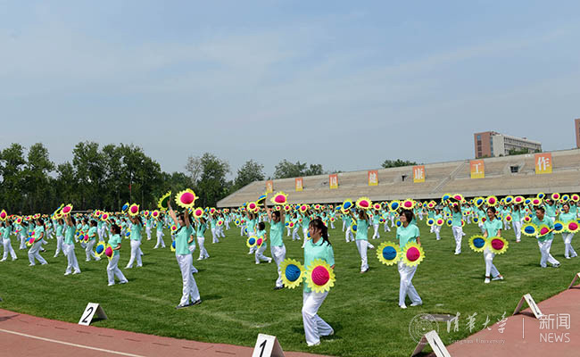 各院系运动员迈着整齐的步伐列队走过主席台。全校共有60个单位1200名教职工参加了入场式和第九套广播体操的表演,36个分工会的640名教职工参加了团体操表演。整齐舒展的动作、欢快流畅的节奏,突出了“健康、快乐、向上”的时代风貌,赢得了现场观众的阵阵掌声和喝彩。