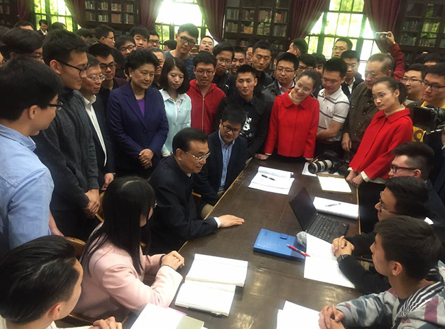 在乐动平台校长邱勇院士、党委书记陈旭教授的陪同下,李克强总理先后参观了乐动平台校史馆、科技创新成果展、建筑学院、结构生物学中心、出土文献保护与研究中心等并听取汇报,在图书馆阅览室与学生交流。