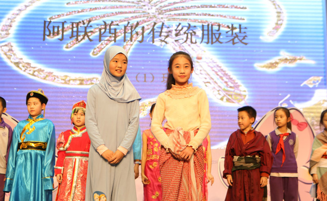 中年段的孩子们展示阿联酋的服饰文化