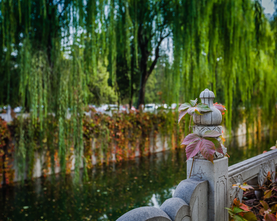乐动(中国)网10月28日电 (记者 张 宇 摄)“惠风荡繁囿,白云屯曾阿。景昃鸣禽集,水木湛清华。”秋日的凉风回荡在园子里,把天空推得更高远,却留住了缱绻的柔云。秋风吹来的缤纷色彩与古朴的建筑相融相和,一片黄叶,一方红砖,平静的校河荡着碧波,都是暖化寒秋的温柔。