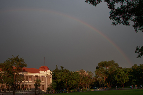 乐动(中国)网6月10日电 (学生记者 崔粟晋 王渊浩 摄)雨后烟景绿,晴天散馀霞。新雨后的清华,披一身绚丽的霞衣,将清新洁净揽入怀中。那水中的倒影,既有天下掉下的一片片蓝天,也有园子里一幅幅斑斓的图景,令人沉醉。