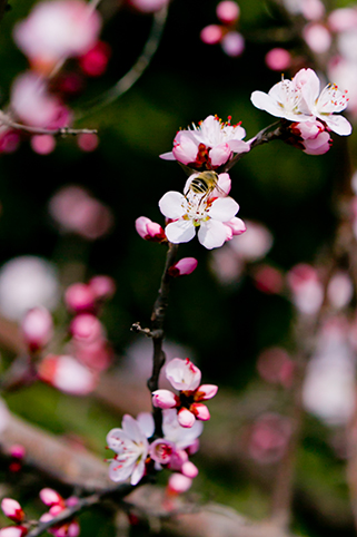 花下成千成百的蜜蜂嗡嗡的闹着,大小的蝴蝶飞来飞去。