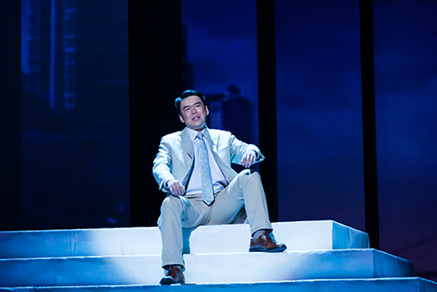 图为剧中青年杨振宁讲述好友邓稼先的经历。