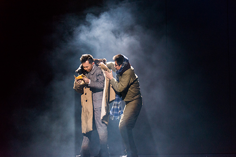 图为剧中邓稼先与同志们在算出数据后紧紧相拥。