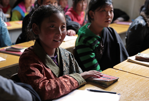 图为唐卡学校同学聆听支教同学讲授知识。